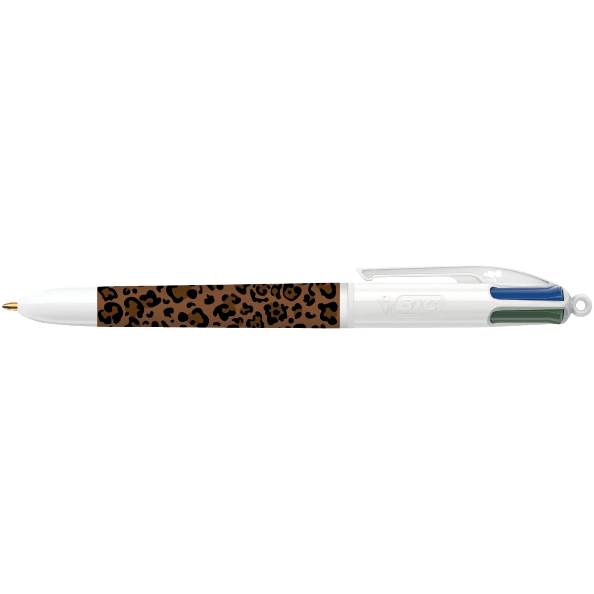 Boîte de 12 stylos bille BIC 4 couleurs pointe moyenne Léopard assortis